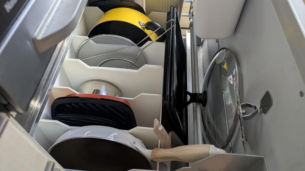 フライパンや鍋は上向きに置かなくても大丈夫。
