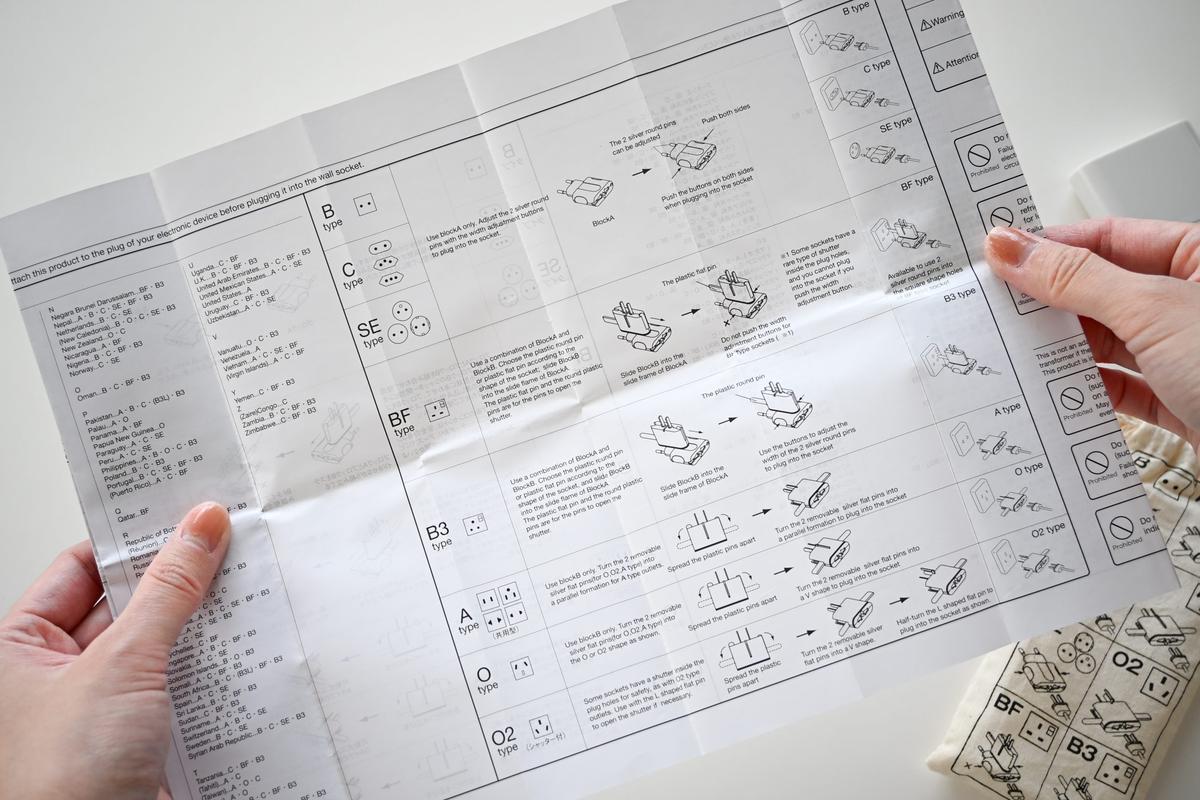 本体は2つのプラグとキャップの3パーツに分かれていて、説明書の通りにプラグを組み合わせることでさまざまな国に対応。