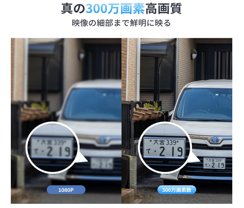 高画質の300万画素に対応し、屋外で撮影したものでも人物の特徴や服装、文字などもしっかり捉えられます。