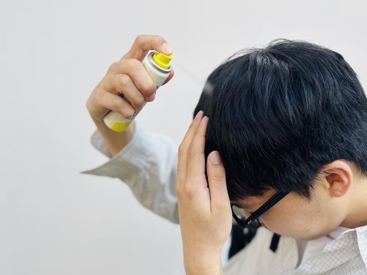 使い方はシンプルで、髪から15cmほど離してスプレーし、地肌になじませるようにもみ込むだけ。