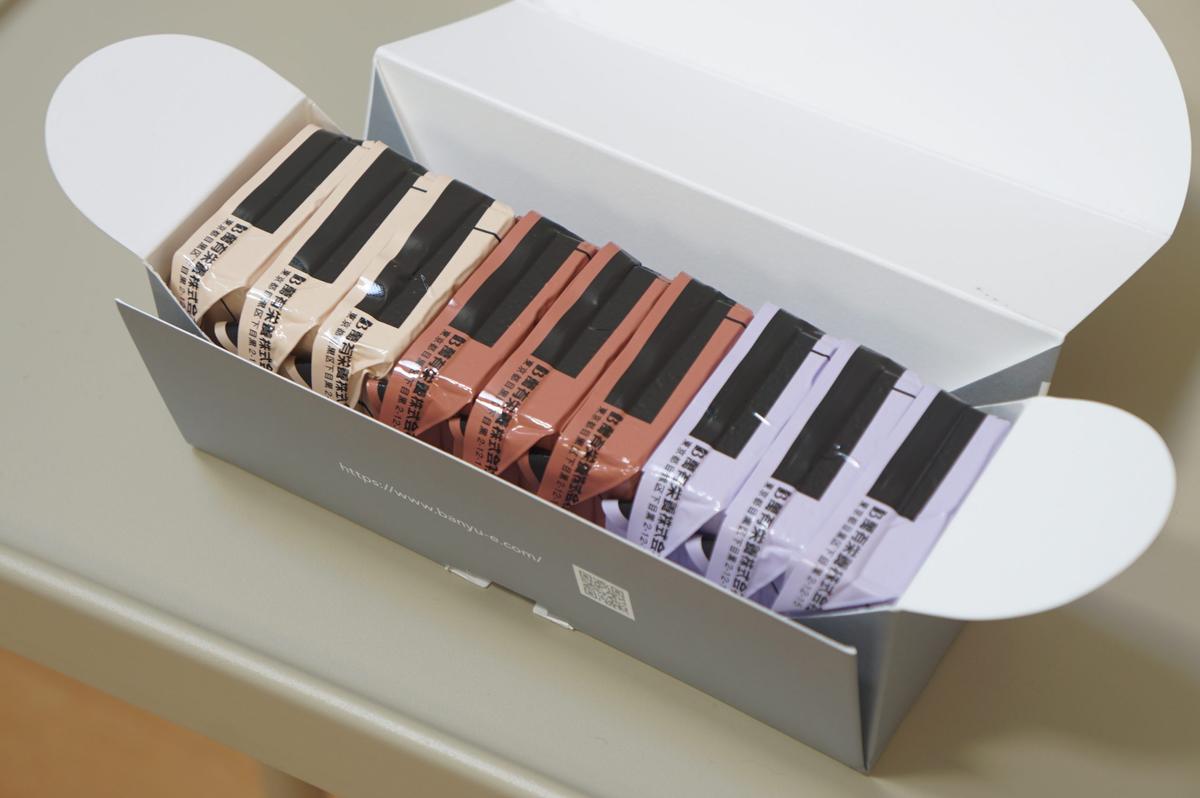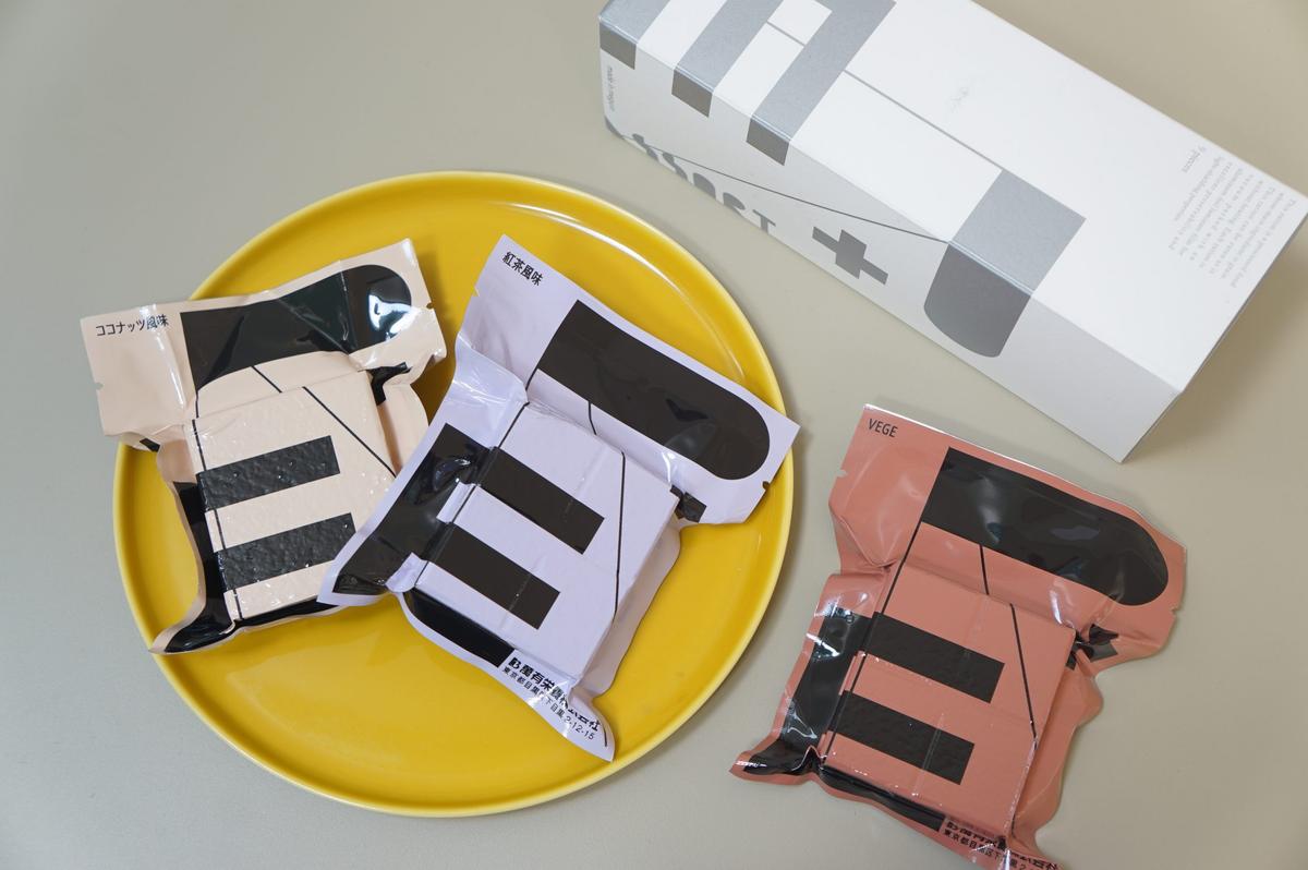 今回購入したアソートタイプは、「ココナッツ風味」「VEGE(野菜風味)」「紅茶風味」の3種の味が3個ずつ入っています。