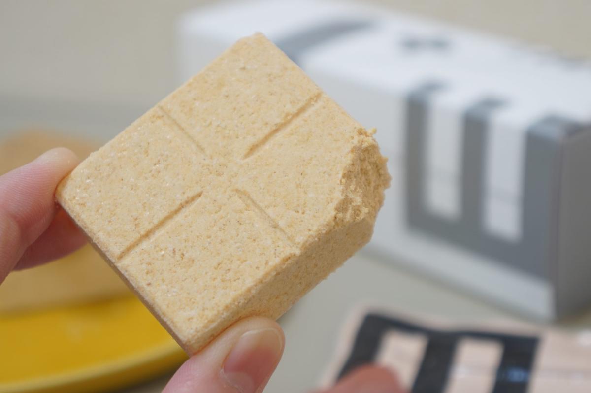 コンパクトな見た目だけどカロリーはとっても豊富で、1ブロック(56g)あたりご飯約1膳分のカロリーが摂れるというから驚きです!
