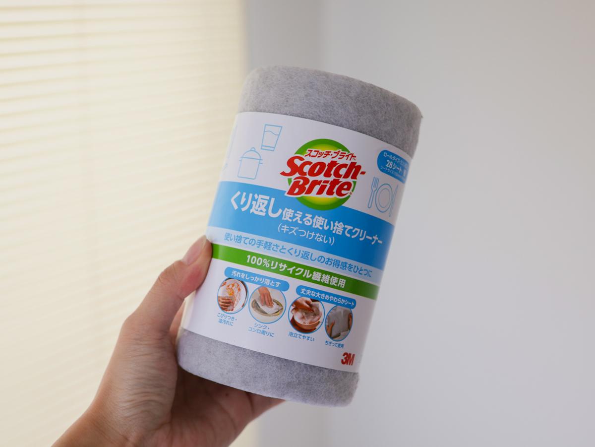 スコッチ・ブライトの「くり返し使える使い捨てクリーナー」は、28回分のスポンジがロール状になったアイテムです。