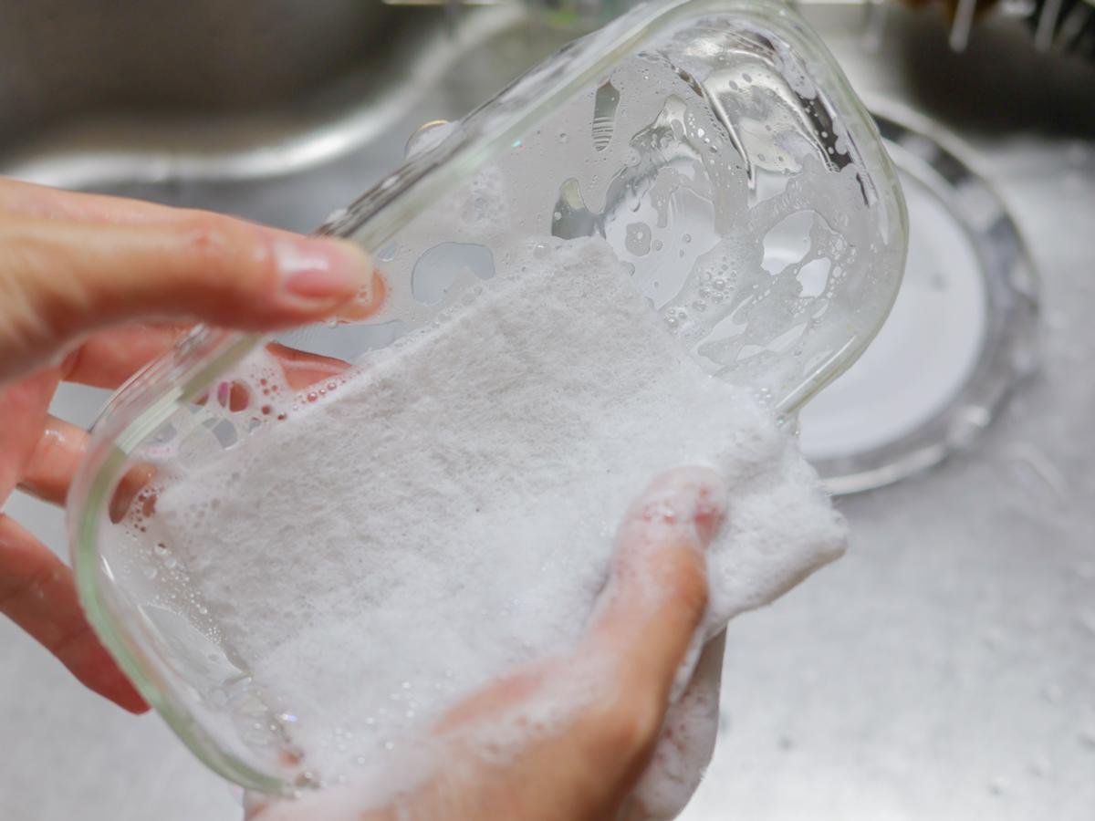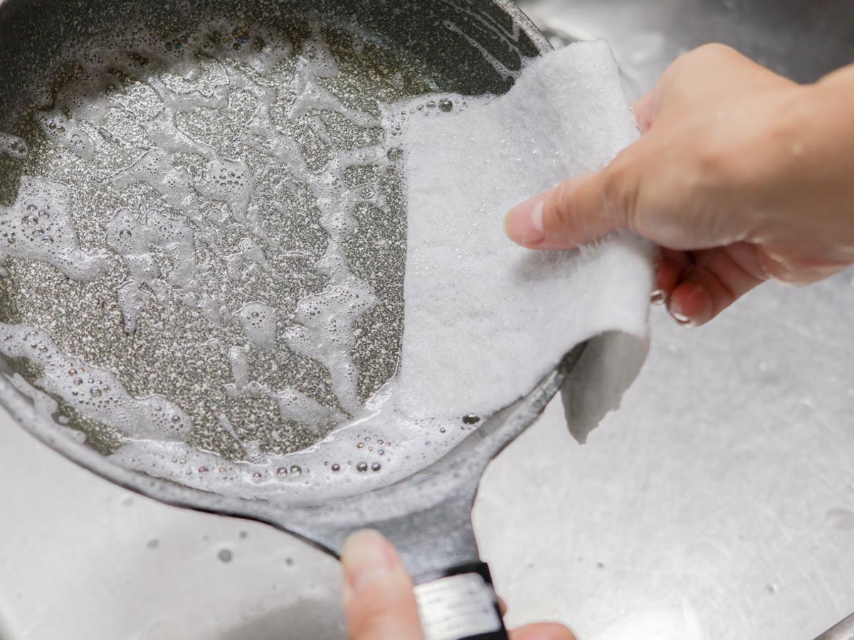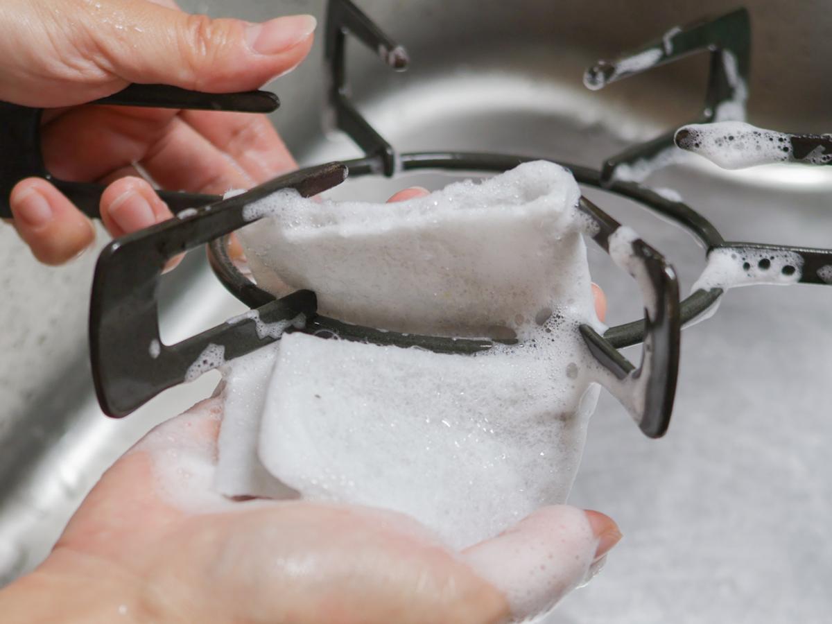 使い捨てのスポンジだから「汚れたら捨てればいいか」と思えて、べたっとこびりついた汚れも気兼ねなく擦りあらいできるのが爽快なんです。