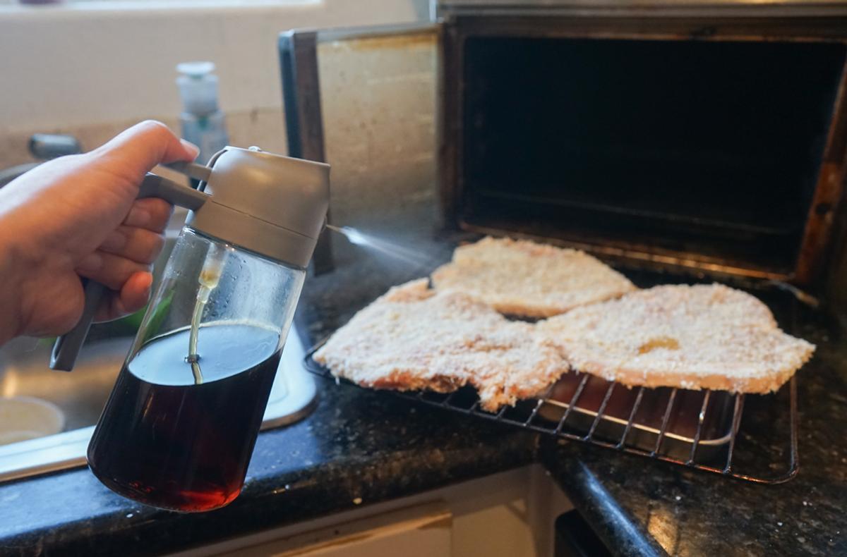 油を使って揚げずにとんかつなどの揚げ物ができるため、我が家ではヘビーユースしていますが、少量のオイルを吹きかけるとおいしさがアップ。