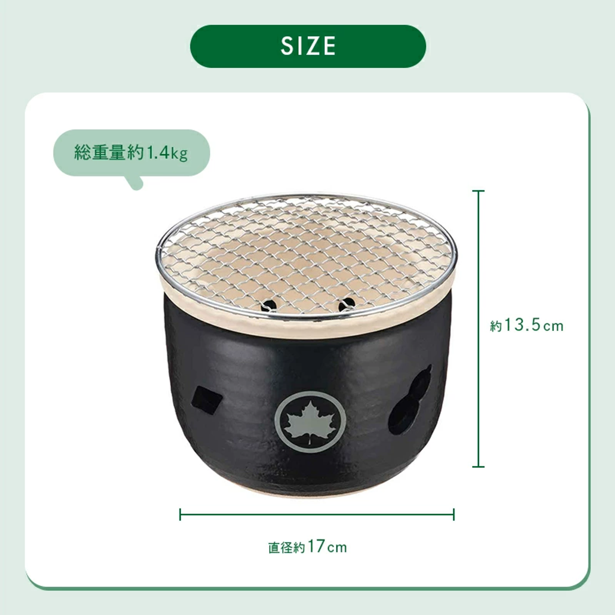 陶器製のコンロは国内工場で製造しており、品質の高さが魅力。直火にも耐えられる強度が持ち味で、炭火の高温でも安心して使えます。