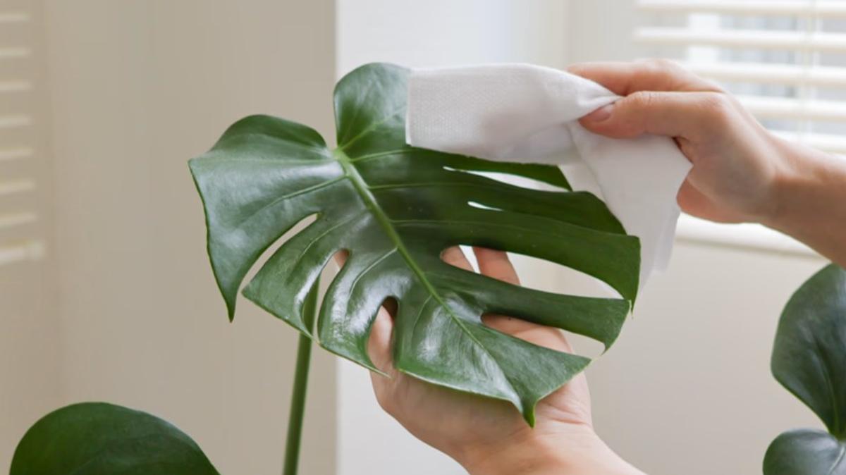 「葉をきれいにするシート」で観葉植物を簡単お手入れ。水が飛散しないから室内でも使いやすいよ