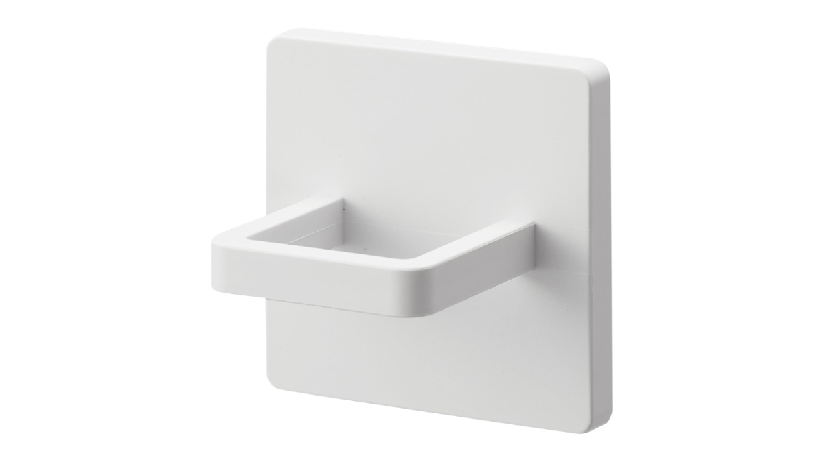 設置場所にフィルムで貼り付けて、本体を取り付けるだけで設置が完了。約W6×D4.5×H6cmのコンパクトサイズながら、耐荷重は約1kgと十分なスペックを備えています。