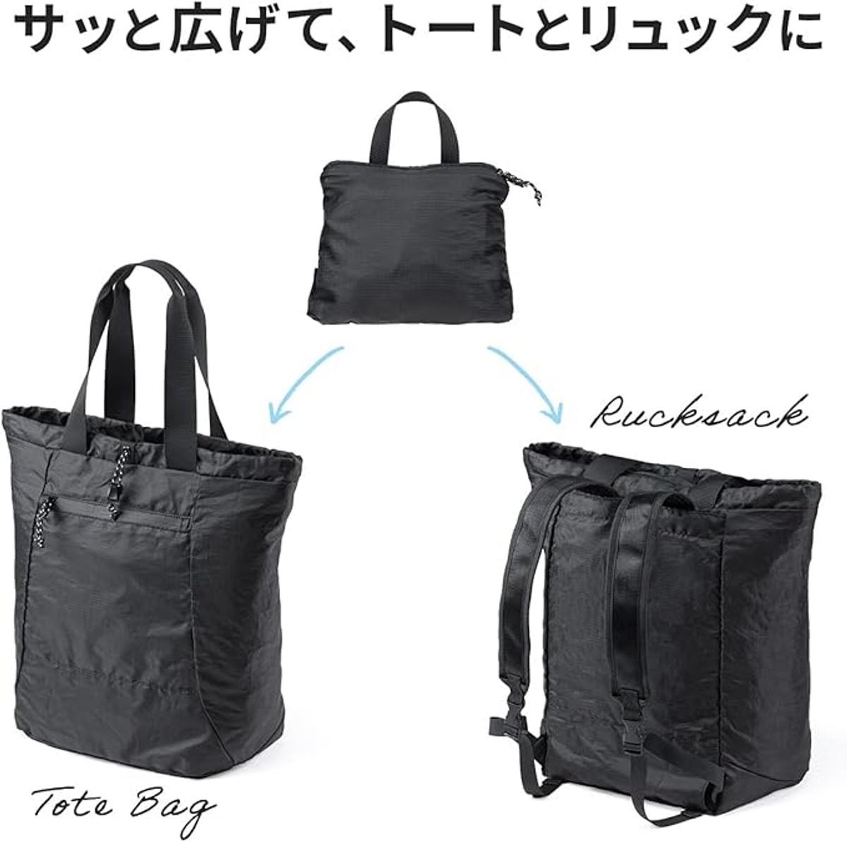 シーンに合わせて「リュック」と「トートバッグ」を使い分けが可能。使わないときは折りたたむことができ、バッグの中に収まるコンパクトなサイズ感がGOOD。