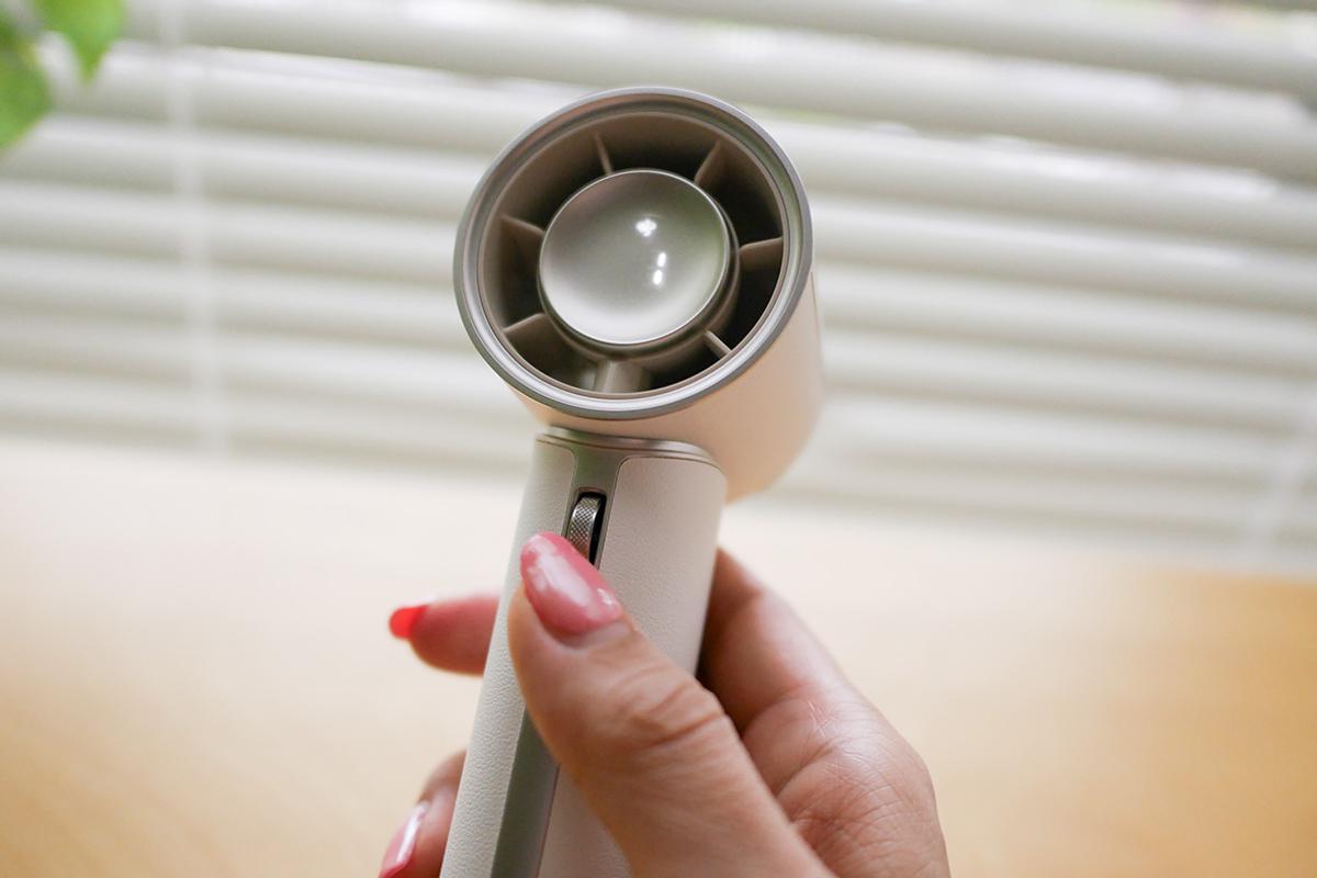 「Handheld Fan Pro1 Mini」の風は、もちろんパワフル。さらに、100段階の細かな風量調節ができるのもポイントです。