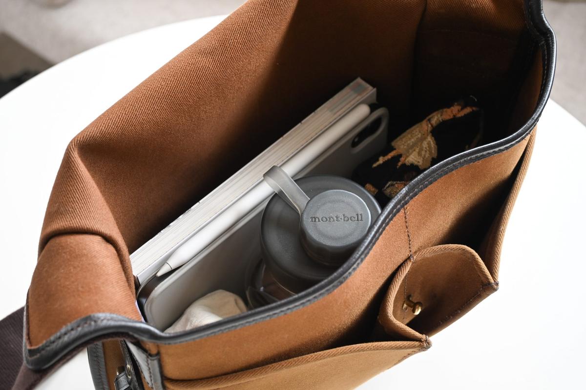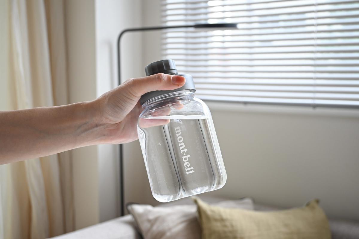 小さなカバンでも持ち歩ける、モンベルの「四角いボトル」。このコンパクトさで実は500ml入るんです