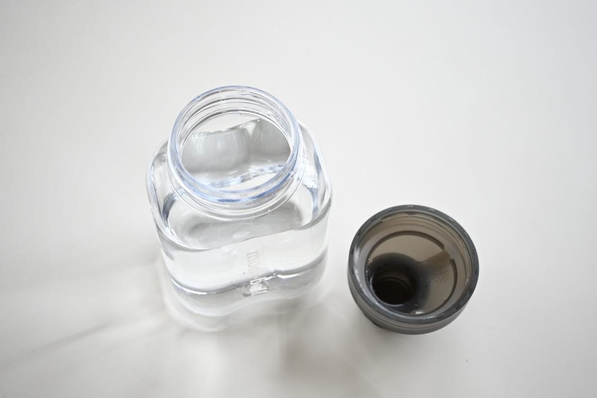 一般的な500mlのペットボトルよりも高さが低く、四角いフォルムが場所を取らないので小さめのカバンにも入れやすいのがとにかくうれしい……!