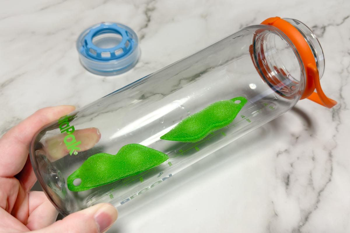 使い方は、水筒の中に水道水と一緒に放り込み、蓋をして20秒ほどシャカシャカと振るだけ。
