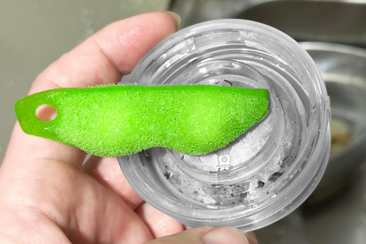 ちなみに、蓋やパッキンなどの小物なら、普通のスポンジのように使って一緒に洗うこともできました。