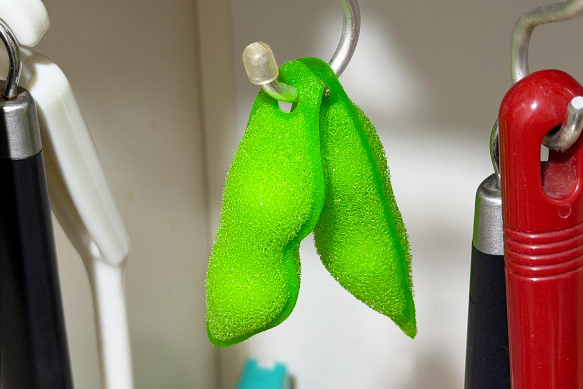 見た目はかわいらしい枝豆のようですが、実はボトル洗いの手間を激減させてくれる便利なアイテムなんです。