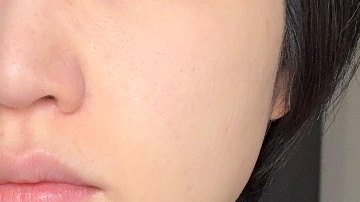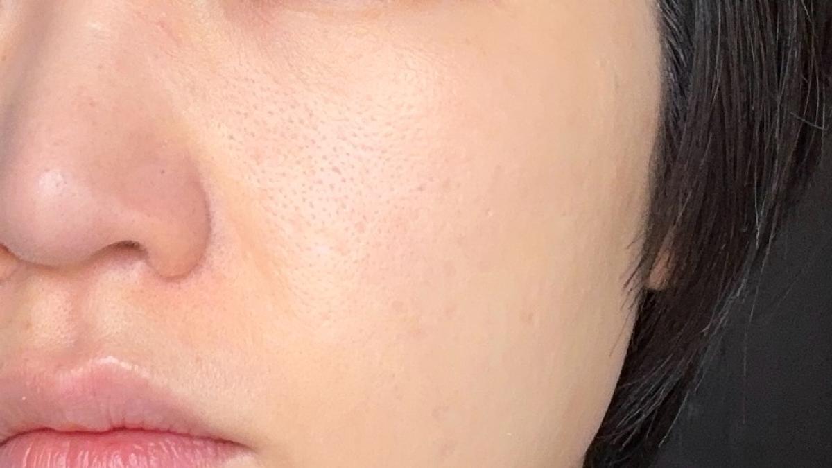 そして、パウダーをのせるとこんな感じ。気になる凹凸や毛穴をぼかして1枚フィルターをかけたようなフォギーな仕上がりに。