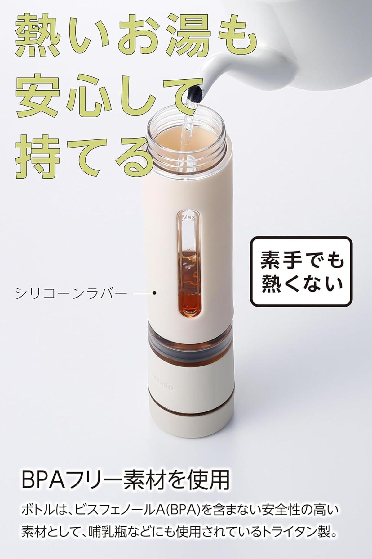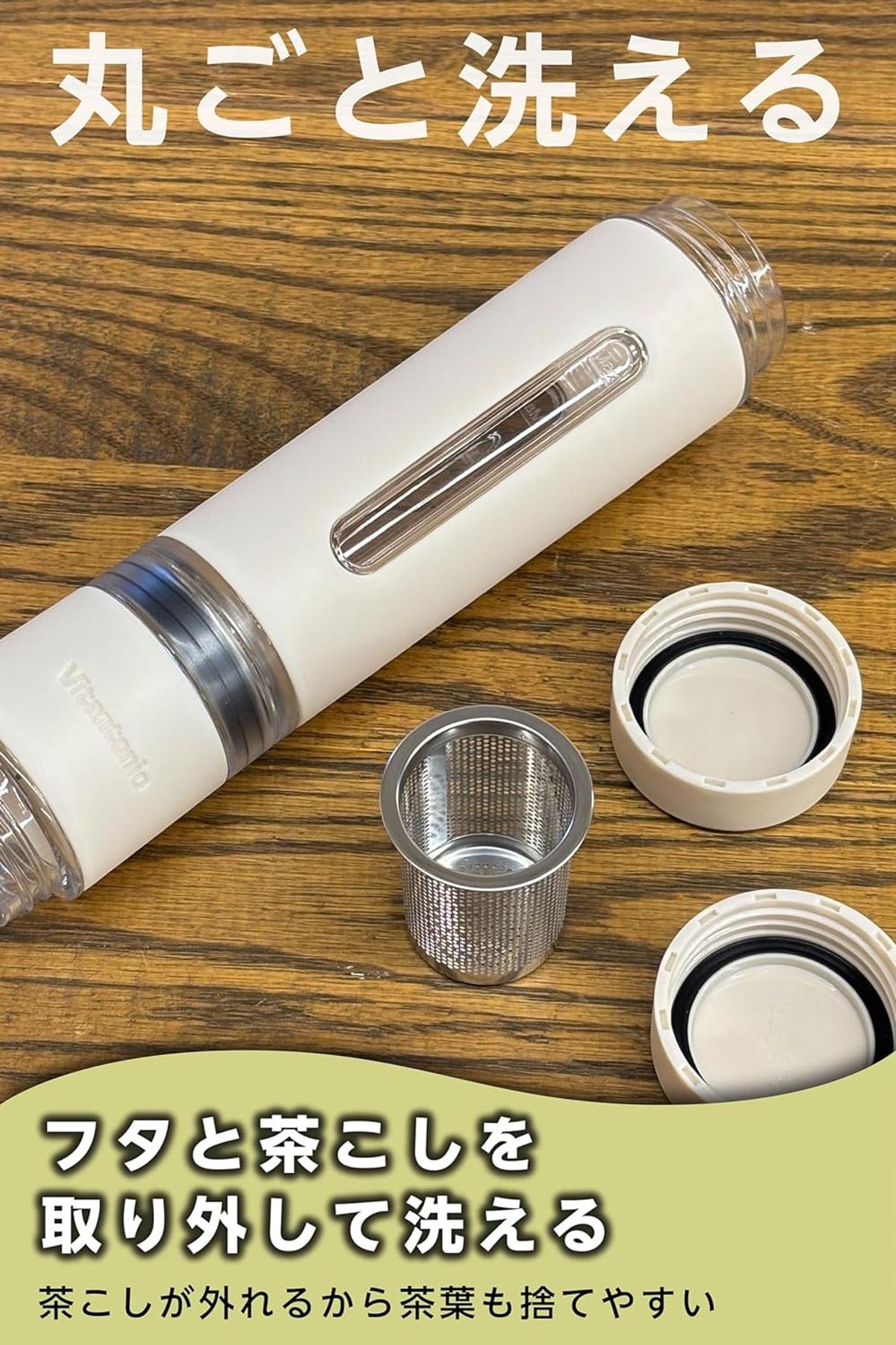 素材にはBPAフリーのトライタン樹脂を使用し、安全性にも配慮。フィルターはパンチング式で茶葉が詰まりにくく、丸ごと洗えて衛生的です。