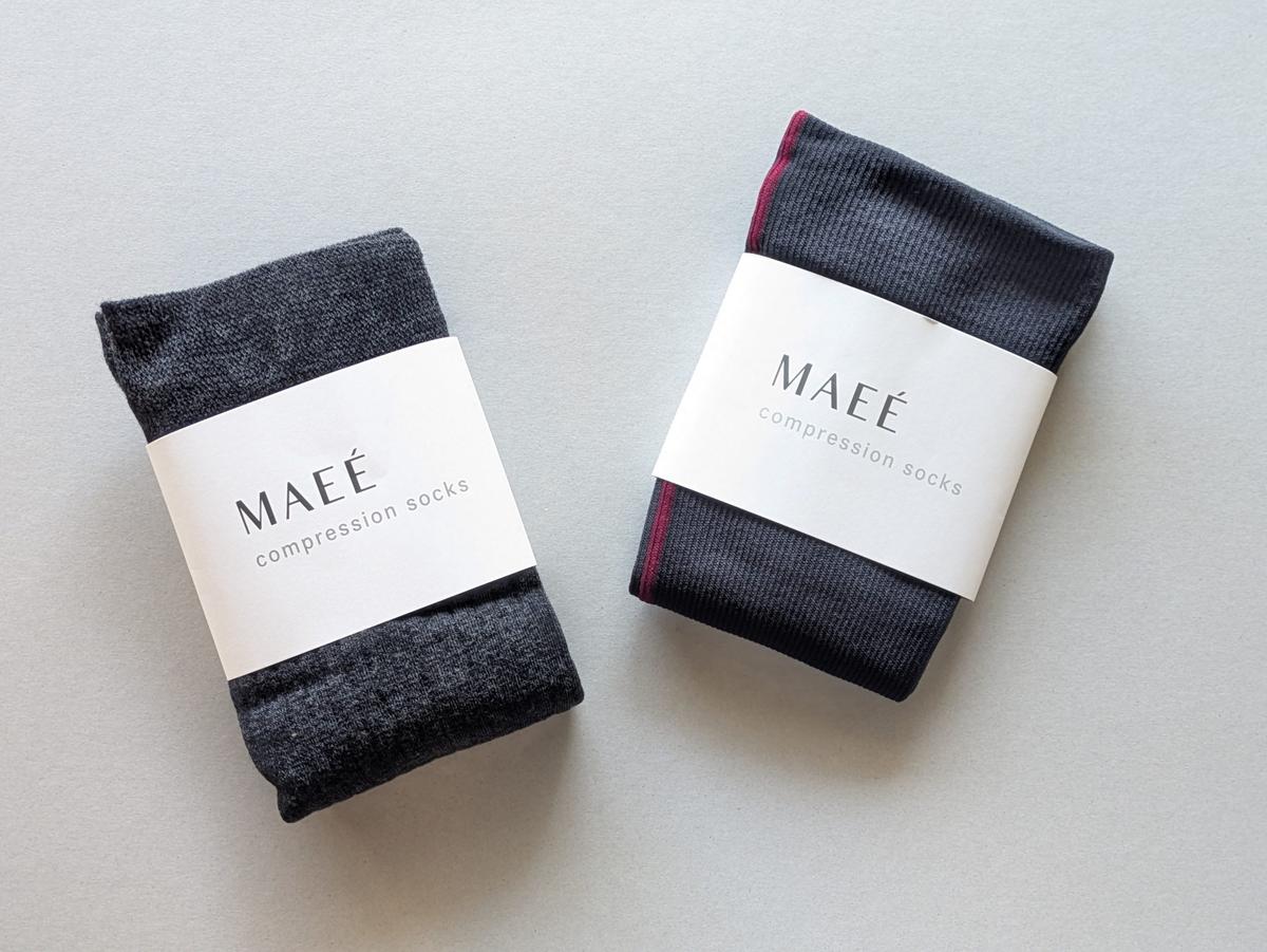 MAEÉ(マエエ)のソックスは、医療用ストッキングやウェルネスウェアからスタートしているという背景があるだけに、着圧設計にも説得力があります。