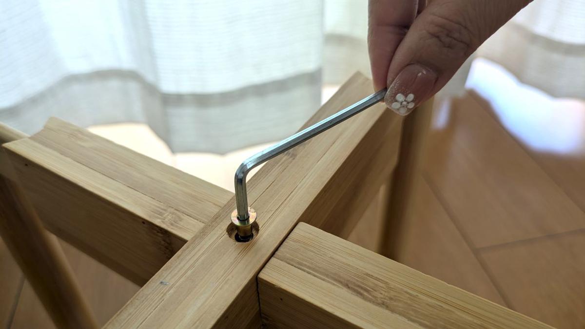 付属のネジと六角レンチを使って接続します。