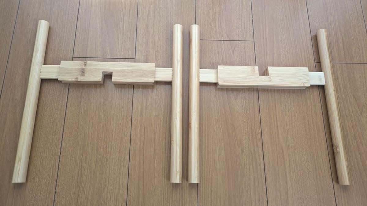 届いたときの状態は2つのパーツに分かれています。これを組み立てるとスタンドになるんです。