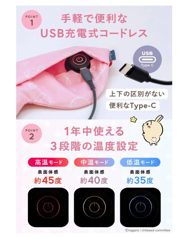 ちいかわの人気キャラ「ハチワレ」デザインで癒し効果もアップ。