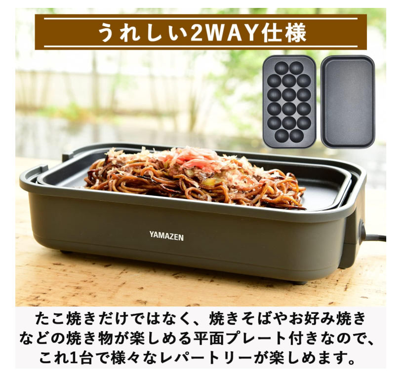 1台2役でたこ焼きも焼きそばも楽しめる山善の万能プレートが16%オフ