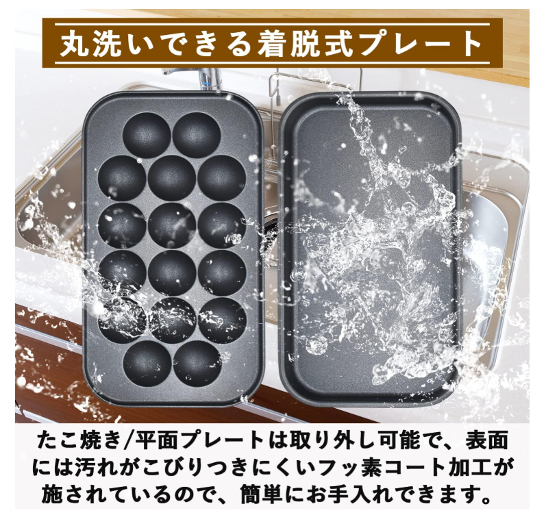 たこ焼きプレート・平面プレート共に取り外して丸洗いが可能です。