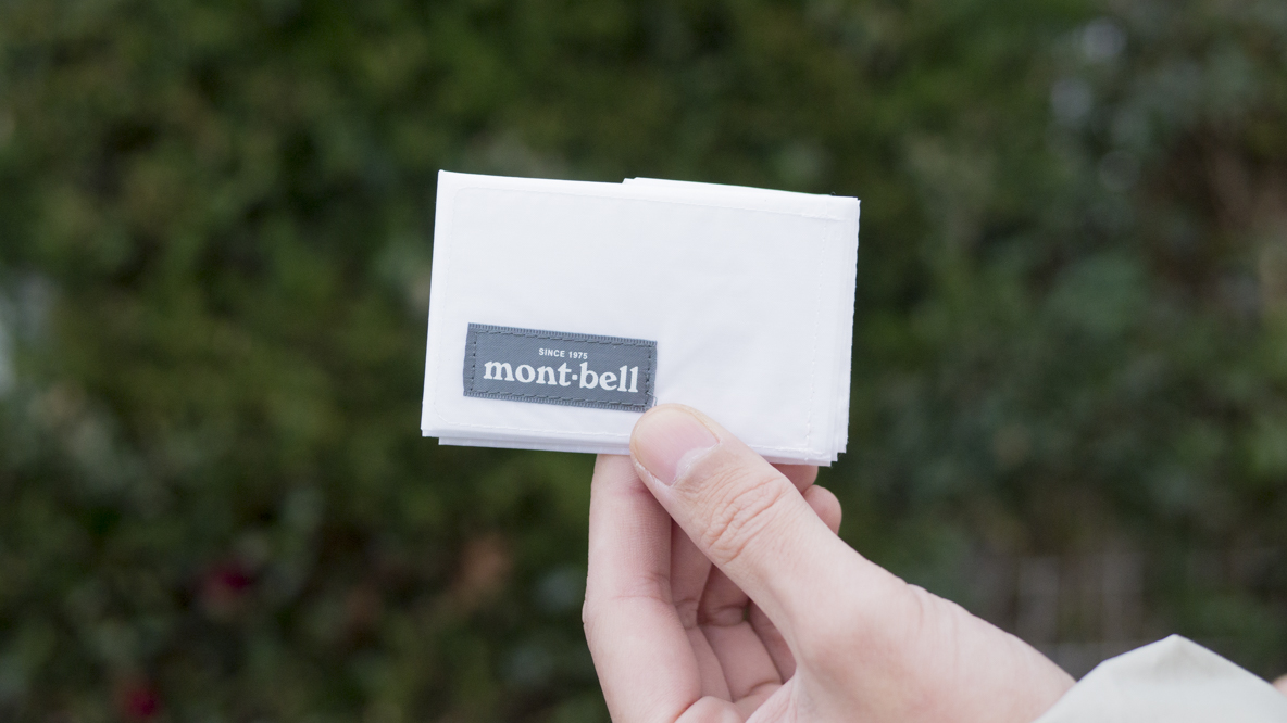 収納する時は細くなるように2回折りたたんで、モンベルのロゴが正面にくるようにさらに2回折りたためばOK。簡単でしょ?