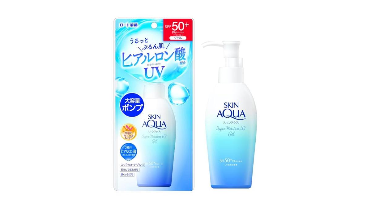 SKIN AQUAの「50+ スーパーモイスチャージェル ポンプ 140g」は、「水膜ベールUVの伸びやすさ」「ヒアルロン酸配合のうるおい」「4つのフリー処方」で快適な使い心地を実現。